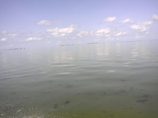 It occurs to me that every time I am in a hurry to get out fishing, I seem to forget something. And today was no exception. After closing out our positions for the day and a few phone calls I was off. I had the whole day, no phones, no markets and no bad weather. Time to go fishing and hopefully beat the noon time convection winds. Since it was dead flat, I decided to run over to Bayport to catch some whitebait. I spent about 30 mins looking, but never saw any. I picked up some mud minnows on the way back to centipede bay. Took my time getting in to the back of the bay, casting a few lures on the way. Final anchored up with a few lines out and ready for a tasty cold beverage, only to find the cooler was empty! Where's the drinks, where's the food and more importantly where's the ice. As it turns out I left a bag full of ice, food and drinks hanging on the back of the dinning room chair. That's a trip ender, reeled up the lines and went home to clean up the mess.